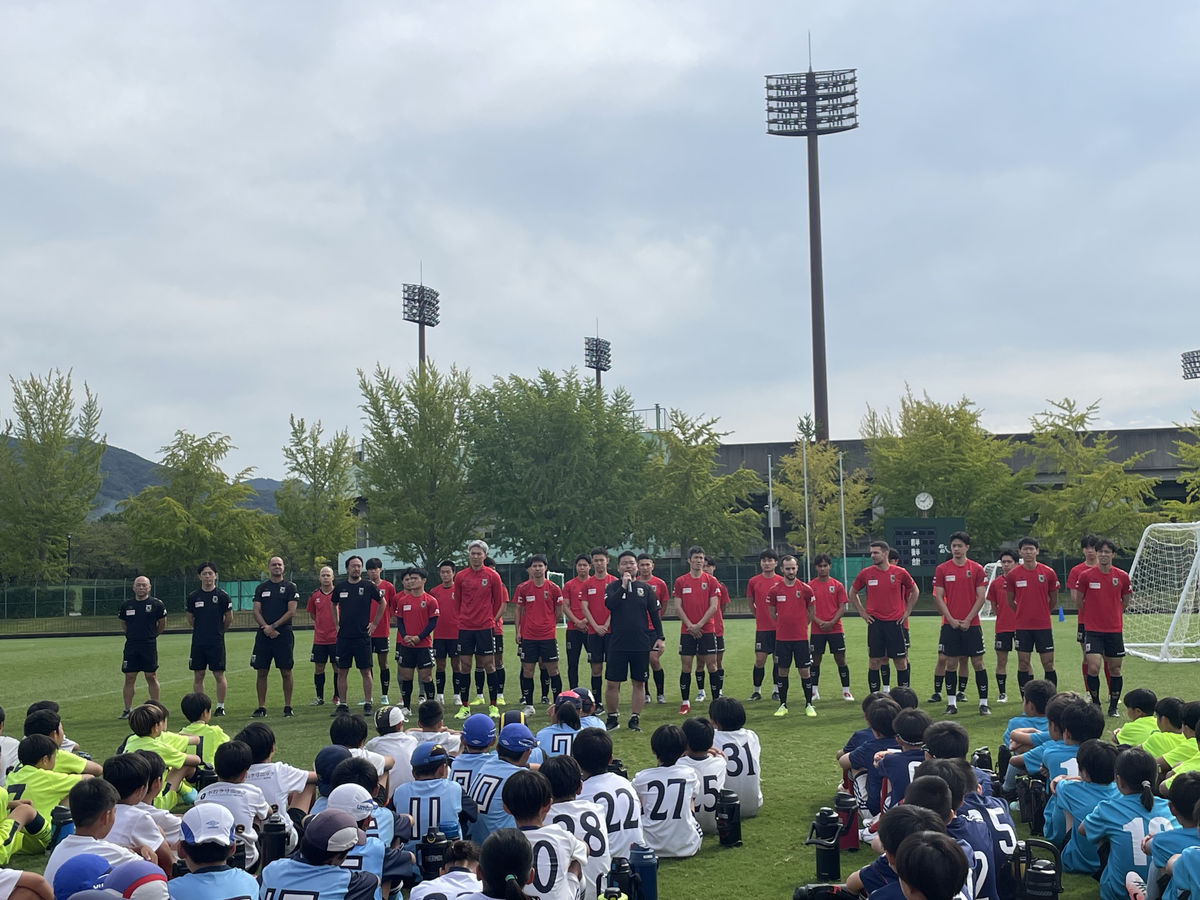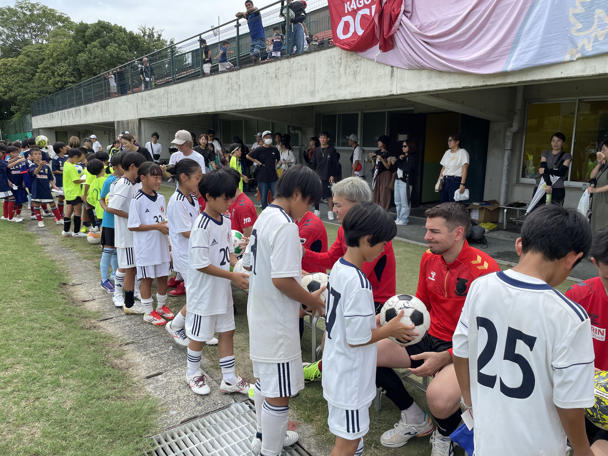 お天気にも恵まれて、交流戦の中で選手チームからボールを奪ったり、一生懸命ゴールを狙ったり、真剣になっている姿や選手と楽しそうにプレーをしていました。ハイレベルなテクニックを間近で見ることもでき、子どもたちから「上手い、すごい」と声が上がっていました。サイン会もあり、楽しく交流会を行うことができました。